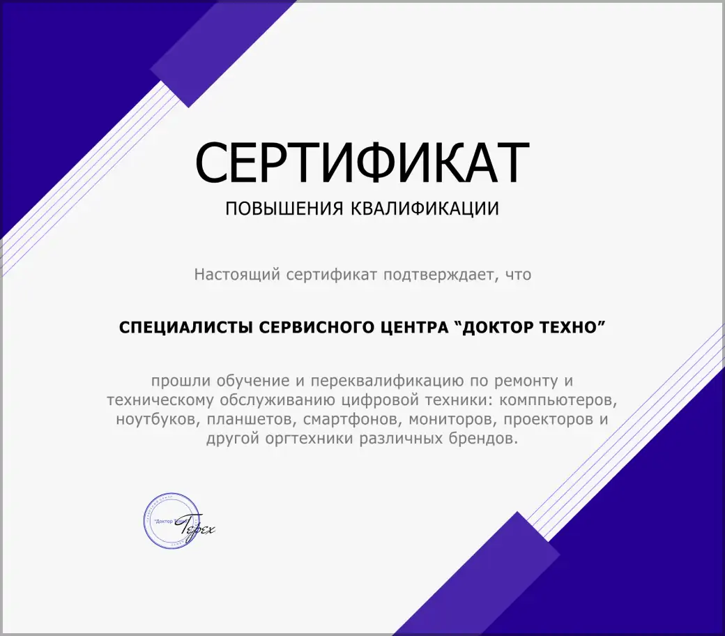 Наши мастера обладают профессиональными навыками и сертификатами, подтверждающими их квалификацию в ремонте цифровой техники. Мы гарантируем качественный сервис и быстрые сроки выполнения работ, чтобы ваша техника была в идеальном состоянии. Доверьте свои устройства опытным специалистам и наслаждайтесь их бесперебойной работой!